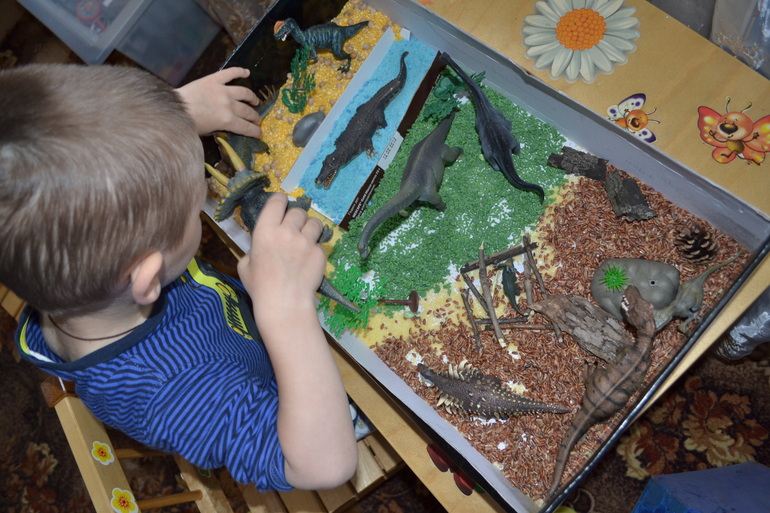 Новые ролевые игры, таскает везде за собой. Любимчики все рогатые-шипастые. Уже поиграли в сенсорную коробку!