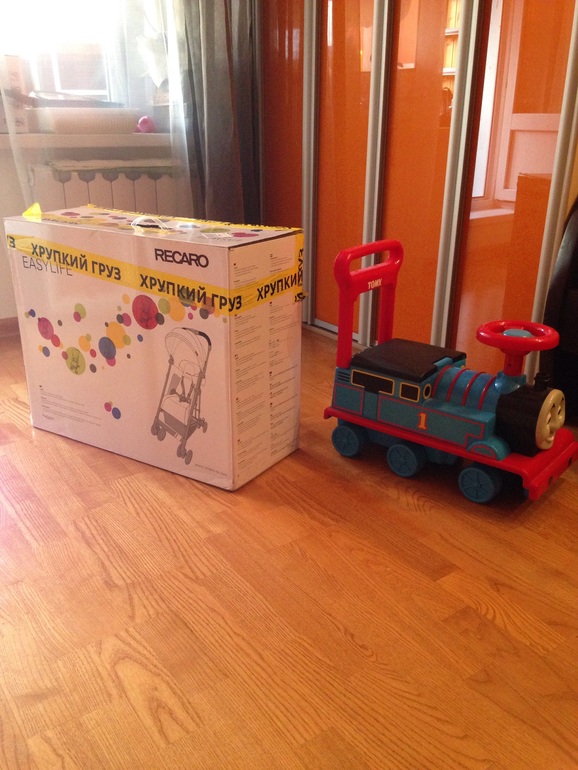 А это коробка от Рекаро в сравнении с паровозиком Tomy))) в такой же коробке кукольные домики продают)))