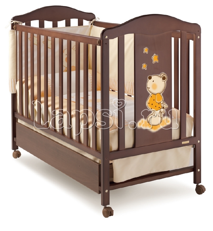 У нас микуна. Просто на колесиках, без ящика. Увидев в магазине я влюбилась в нее. Не зря ездили в другой город за ней. Нам удобно с колесиками - пододвигаю кровать к своей. Маятник нам бы не нужен был точно, засыпаем вместе, потом перекладываю. Ящик думаю тоже бесполезен - он не глубокий и открытый. Неопрятно выглядит чем-то набитый. У подруг видела. К качеству претензий нет. Обратите внимание на реечное дно - у нас оно было не окрашень, хотя кроватка белая. Пришлось шить пыльник-юбку. Но от этого кровать стала только красивее.