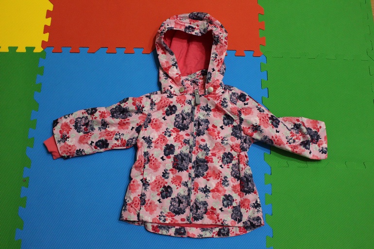 А потом сайт Mytoys заманил меня выгодным предложением на марку Name it. Покупаешь 3 вещи, а платишь за 2, плюс можно использовать купон на скидку 400р. Кстати, вещи этой марки оказались невероятно качественными! Правда размер 80, который я купила, будет впору не раньше лета. По акции я купила очаровательную ветровку на лето с х/б подкладом за 1300: