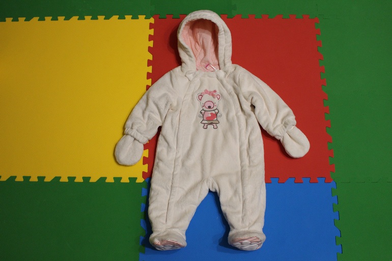 Вот у нас точно такой же селовский комбез, только синий!! :))) Так как он велик по длине, Сёма очень любит в нем молнию кусать :) Рукава я закатываю немного, а так хороший. Мы от 0 в нем ходим + флисовый конверт в коляске, когда потеплеет, хочу конверт убрать. Чудесное пальто! И маркс энд спенсер тоже очень люблю. Ты его оффлайн покупаешь?