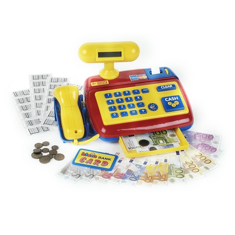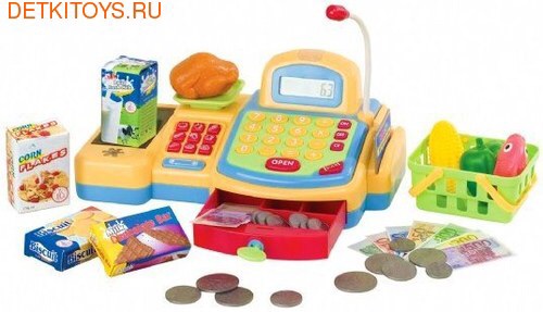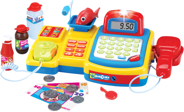 Света, посмотрите еще кассу от Гранд Тойс - российский производитель. В ней есть специальное отделение для фиксиденег, которое закрывается на ключик. Имеется и микрофон, в который нужно говорить, удерживая кнопочку. В кассе есть весы и даже детектор подлинности купюр. А товары можно зачитывать с помощью специального сканера, прям как на настоящей кассе в супермаркете! Кроме того, имеется возможность расчета стоимости покупки. А еще можете посмотреть кассу от немецкой компании Кляйн )))