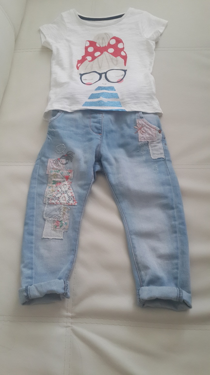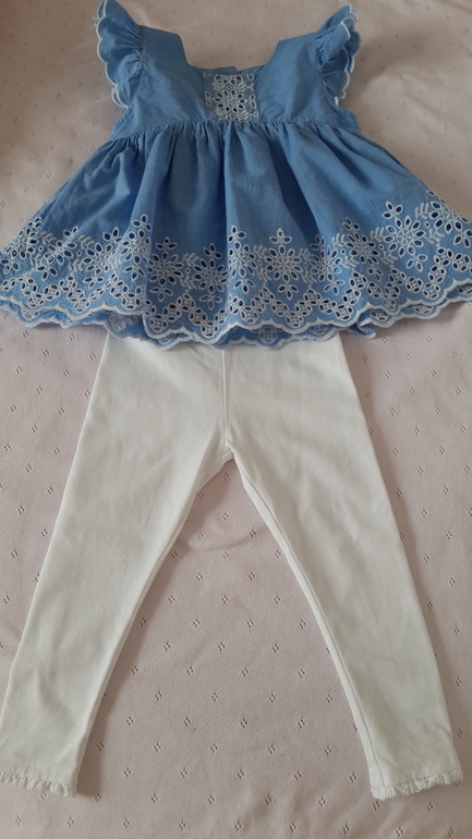 Добрый день, подскажите пжл какой размер вы взяли голубенькой блузочки с вышивкой и белых легинсов некст? И как на дочке это сидит?
