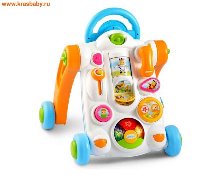 У нас была похожая каталка Vtech , ребенок не разу не использовал ее как каталку. Только развлекательный блок. Может лучше столик взять.
