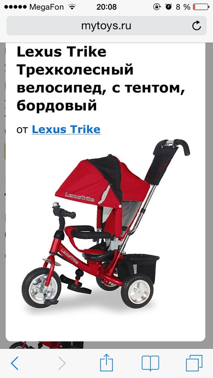ш велик трехколесный))для меня он как коляска))заказывала на Майтойс)очень классный)Лексус Трайк)очень легкий и удобный,легко управлять им)короче понравился)