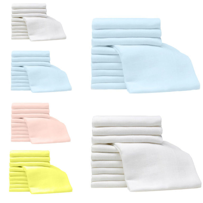 я такие вместо полотенец использовала. Понадобилось: 2 штуки 40х40 (для лица) и 120х120 тоже 2 штуки (для тела). Фактически,большее количество не понадобилось