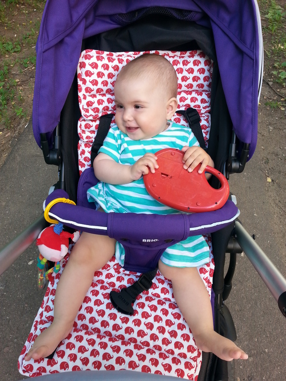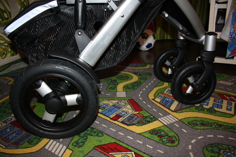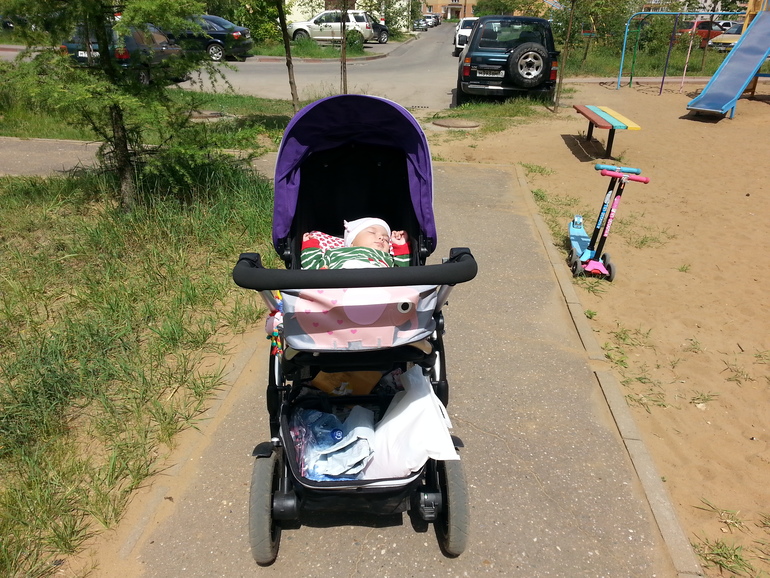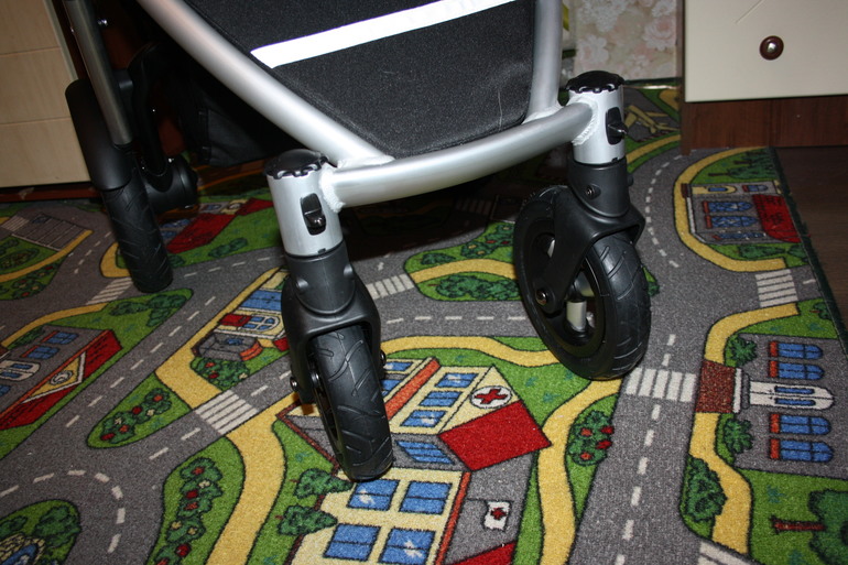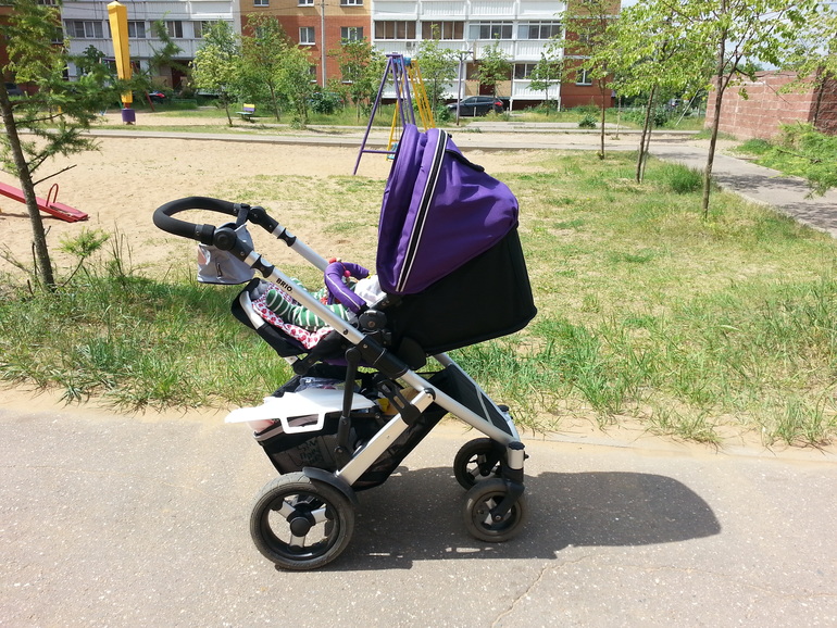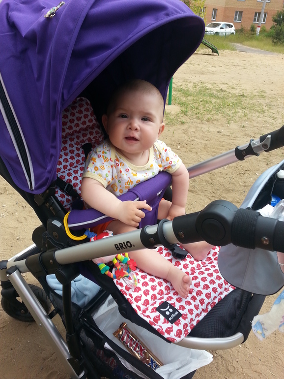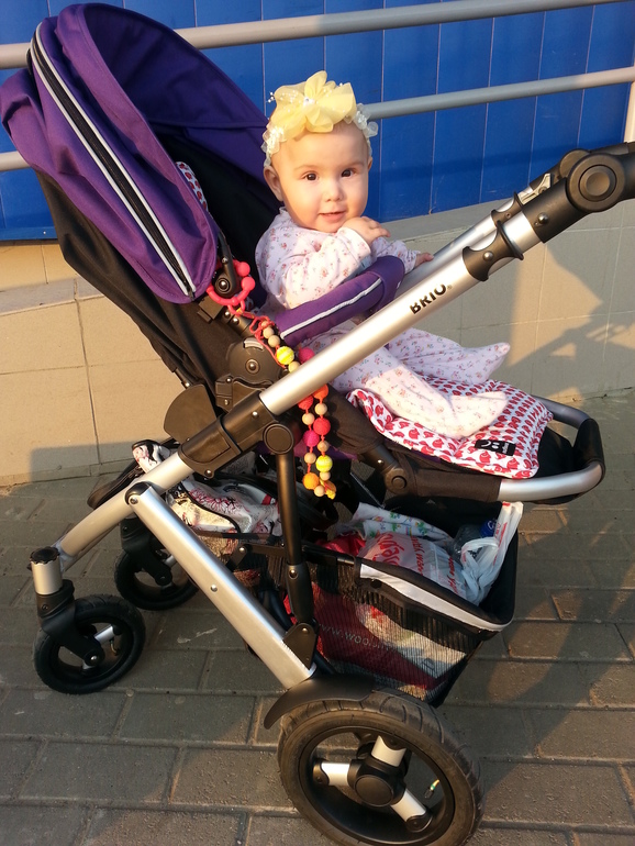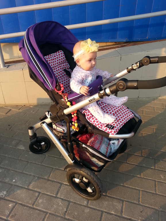 Коляской очень довольна! Ход плавный, в управлении легкая. Багажник просто мечта хозяйки! Я его нагружаю по полной программе (5 литровая бутылка, 2 больших пакета с продуктами, детские вещи. игрушки) все помещается, груз не ощущается. Спит Нина в коляске отлично!