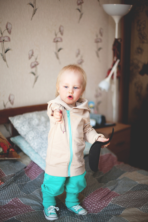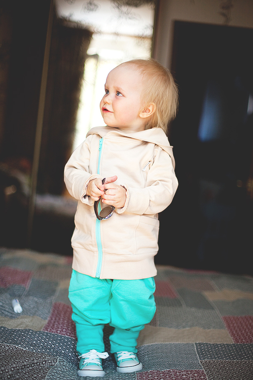 И фото на ребенке))Даня ростом 89-90 см,весом 12 кг)Манжеты на комбинезоне,штанах и кофте подвернуты)