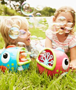У нас был пистолет в виде лягушки. ребенкк очень нравилось самой его направлять и нпжимать на кнопку пуска пузырей. Продается во всяких парках