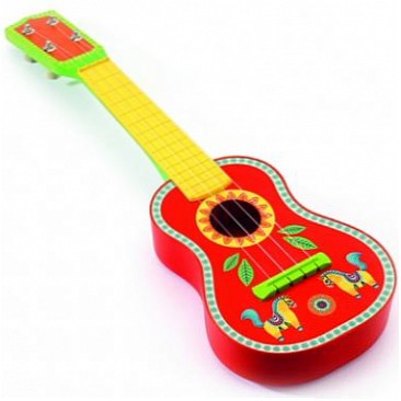 Укулеле, она же гавайская гитара) выглядит как настоящая и звучит по настоящему только маленькая , цены от 2 тыс. до 4.. Не дешево конечно)