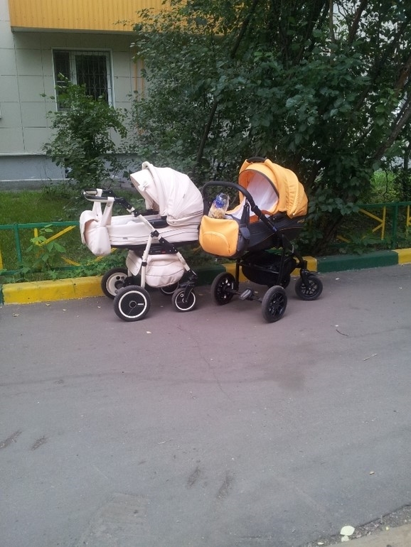 Две очень проходимые коляски. Моя ( эндуро белая из эко кожи) потяжелее паджерика. Паджерик вообще ничего не весит ( материал - ткань) . Для меня небольшой недостаток есть- корзина внизу. перекладина от люльки не даёт засунуть целый пакет с продуктами, приходится вынимать и класть по частям. В паджерике эта корзина в свободном доступе и закрыта на молнию. Вообщем то это небольшой недочет. В паджерике мне нравится маскитная сеточка- она крепится изнутри (на фото видно), на эндуро же сеточка одевается на всю коляску, что тоже не плохо. Эко кожа моется тряпочкой.