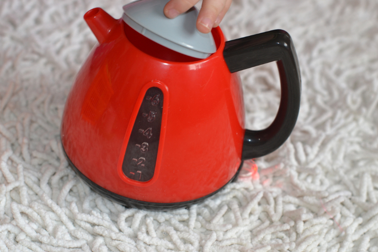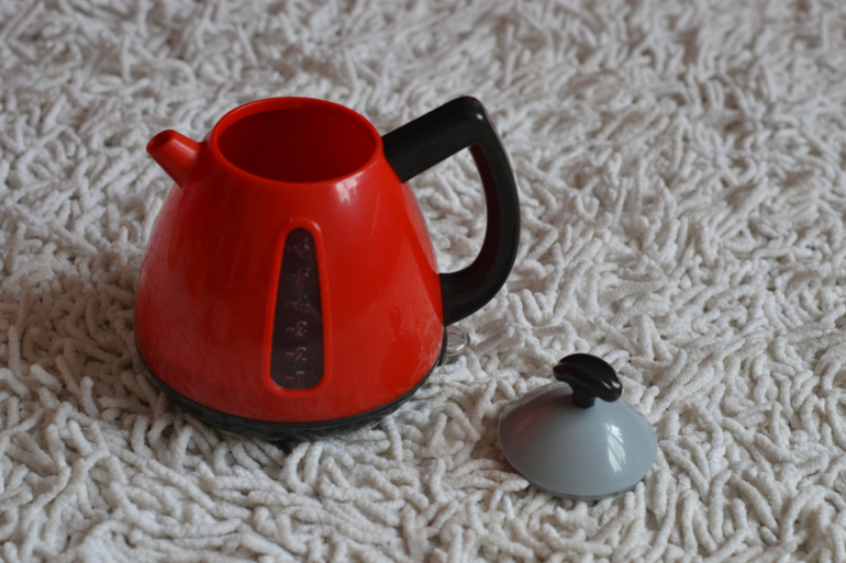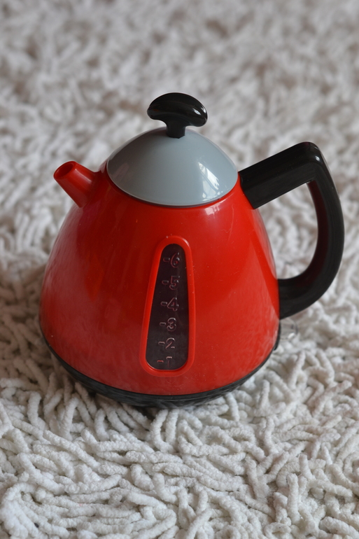 1. Чайник.Можно налить воду, крышка снимается.Работает от 3 батареек. При включении светится кнопка включения, звук закипания
