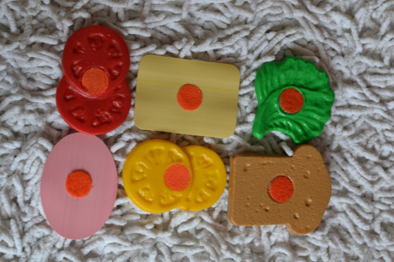 5. Набор на липучках "Бутерброд",липучки пришлось немного подклеить, но в целом нравится, колбаса и сыр выглядят очень реалистично