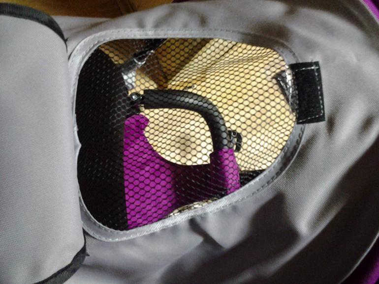 Большое сиденье, капор от солнца и непогоды очень удобный (при желании можно открыть и закрепить на специальную застежку, в капоре есть смотровое окошко, спинка очень высокая из сетчатого материала (хорошо вентилируемая), большая корзина.