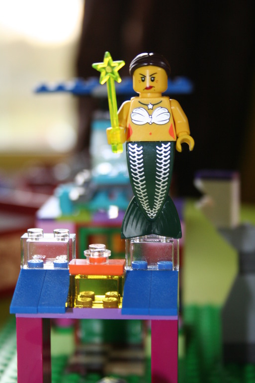 разбила всех наших лего человечков, купленных и собранных в период акций в лего магазине, по парам. русалке пары не досталось. вот она и злая.