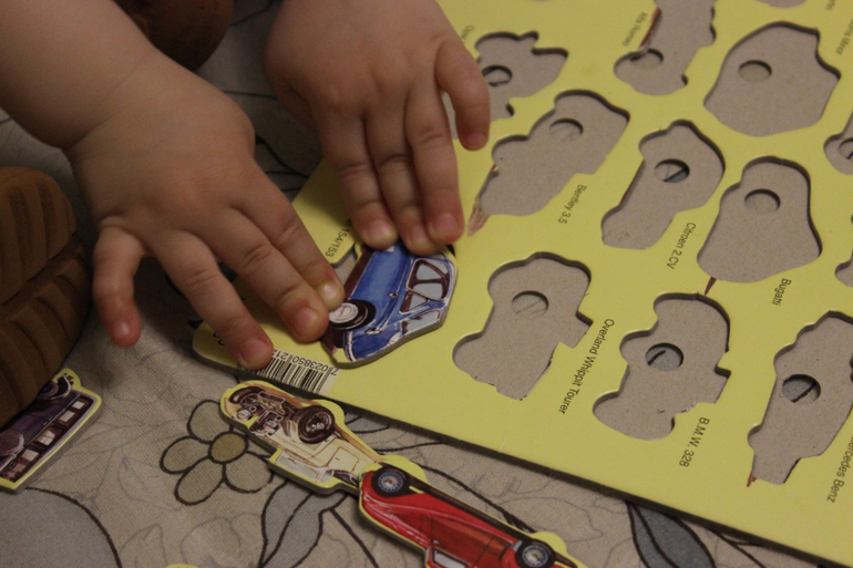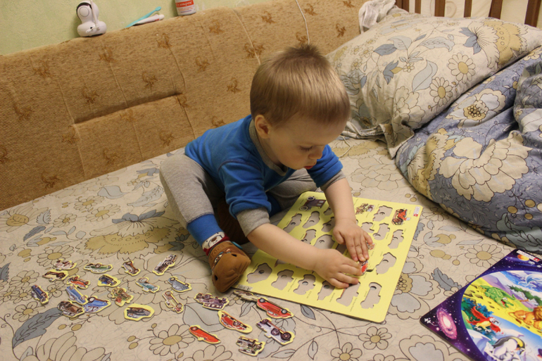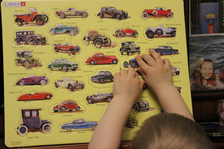 Косте очень нравится вытаскивать машинки из пазла. Это особо любимый процесс). Очень удачны сделаны дырочки под детские пальчики)).