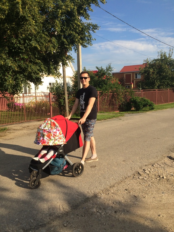 Легко сложить и разложить, на бордюры легко забраться. ОГРОМНЫЙ плюс - отсутствие перекладины между колесами! У мужа широкий шаг, это важно)