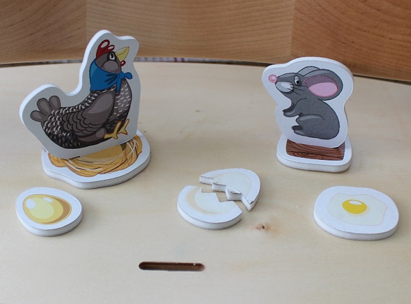 Яичка аж три варианта ... золотое, скорлупки и результат разбивания. На этапе "мышка бежала, хвостиком махнула, яичко упало и разбилось" ребенок обычно хватает в ручки скорлупки и тянет меня на кухню делать омлет. ))