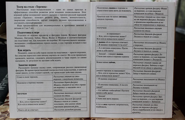 В коробке, кроме фигурок героев сказки, находится книжечка с методическими рекомендациями.