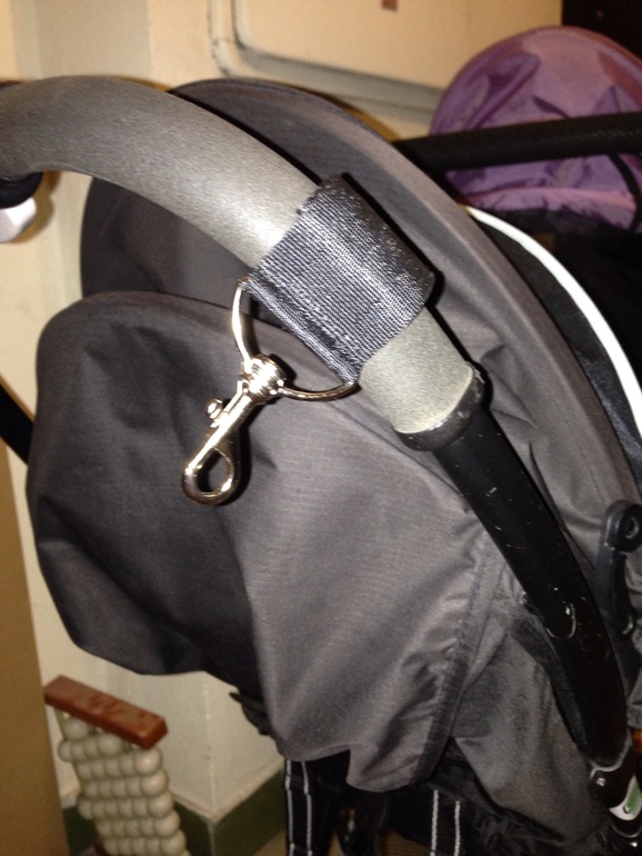 Красиво получилось! :) Да, я примерно так же делала, только карабин я вшивала в ленту, чтобы он не ездил по ней и не слетал при снятии креплений с коляски. Края я опалила, но всё равно подшила, а то стропа всё равно не запаивается полностью