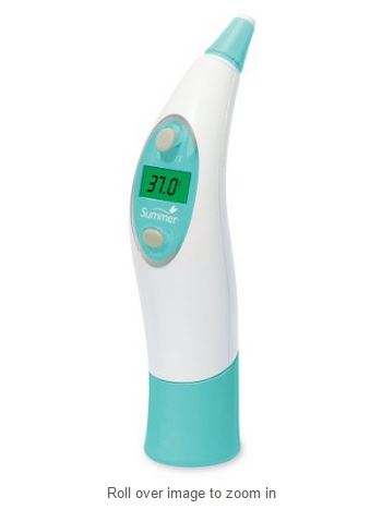 В ухо если вставлять, то тоже ребенок проснуться может, я покупала миниленд бесконтактный, им можно пользоваться даже когда ребенок спит. Но у нашего меньше погрешность — 0,2 плюс\минус, не больше