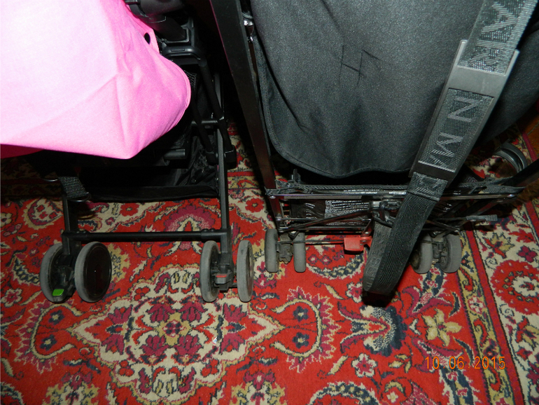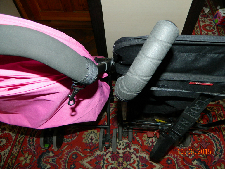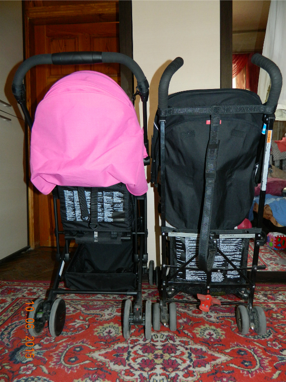 Вот на следующем фото обе коляски придвинуты передними колесами к шкафу и видно на сколько отличается длина колесной базы , а ручки при этом на одном уровне , вот за счет этого волан и падает, но и проще на бордюры и я его не пинаю.
