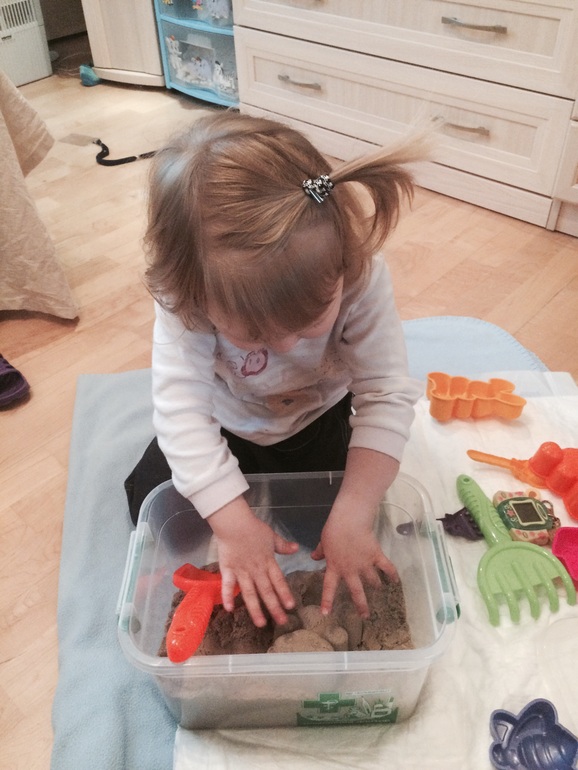 У нас есть наборов 12-14 (маленькие тоже учитываю). На этом останавливаться не планируем, так как Лего в нашей семье очень прижилось, играем все вместе. Из желаемых упустили Большую Больницу, увы (но это больше для меня). Первый купили год назад, и интерес дочкин проснулся не сразу. Зато когда это произошло, мы могли по несколько часов над ним чахнуть. Сейчас Арина уже осознанно играет в Лего. После небольшого перерыва, она по 2-3 часа безвылазно с ним занималась, что-то строила. Но больший интерес пока все-таки фигурки вызывают (а строим в основном мы с мужем), поэтому она рассадила всех человечков и зверье в транспорт и дальше они у нее летали/плавали/ездили в поезде и машине. Теперь Арина еще стала интересоваться питанием животных, поэтому с фигурками зверюшек мы разбираем, кто что ест. А в последние пару недель появились еще и ролевые игры! В общем мир Lego Duplo не имеет границ!4. Кинетический песок.