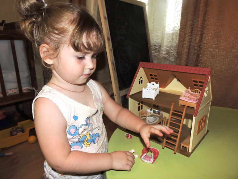 А я на 2 года сразу большой со светом купила (у нас сами зверушки в игре с года были и все выжили, поэтому за дом не боялась). Дочка была в восторге и сейчас часто играет. Я смотрю сейчас на цены и понимаю, что хорошо, что я его тогда купила, сейчас уже не стала бы — слишком дорого даже для такой качественной игрушки.