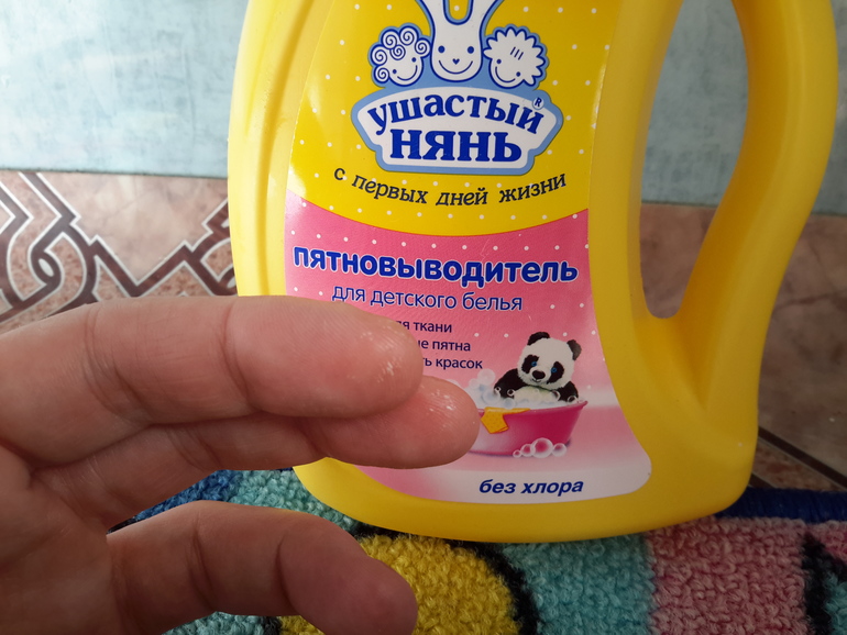 У меня такое тоже было! Сначала даже не поняла — думала, измазалась в чем-то, пыталась смыть, потом уже дошло, что ожог :( После этого завязала с Ушастым нянем — ну его, такую химозу дома держать. Сейчас пользуюсь пятновыводителем Ecover с удобной щеточкой, очень нравится. Но у нас пока и пятен немного. А вот что делать, когда прикорм начнется, — ума не приложу. Там бутылочка небольшая, не напасешься, наверное :(