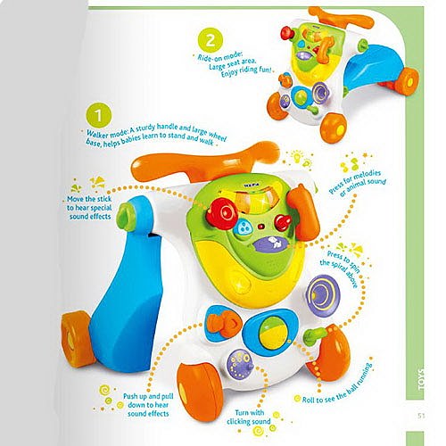 Мне кажется , что это совсем ненадолго — ходунки, может лучше посмотреть толокар с высокой спинкой — за нее можно и повозить. А из развивашек лучше сто-то более музыкально-кнопочное смотреть, имхо.