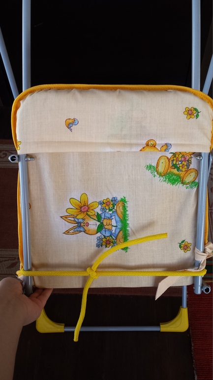 Никаких других креплений для сидения в этих качелях не предусмотрено, в итоге ребенок при качании стал съезжать вперед вместе с сидением и мне пришлось привязать нижнюю часть спинки к металлическому каркасу обычной веревкой (на заднем плане видно). Как видно на фото ткань очень уж тонкая, дочка прокатилась на этих качелях всего пару раз, а фиксирующий "карман" уже пошел по шву...