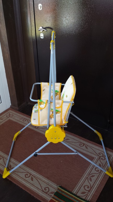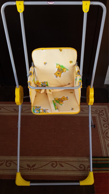 Из положительного могу сказать, что качелька устойчивая и при всей её хлипкости достаточно безопасная. Ребенку качаться нравится, но недолго, видимо, из-за неудобного ремня. Буду его дорабатывать, может какую-нибудь накладку сделаю пошире.