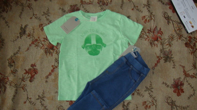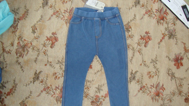 2) Джегинсы. Размер 2-3 года, 98 см. Цена без скидки 749, со скидкой 499.в росте запасик есть, а вот по ширине под коленками впритык. Все таки заровские брючки не для нас, они худышкам хорошо) Но все равно поносим) Материал приятный, трикотаж. Единственное на штанине след от наклейки, надеюсь отойдет...
