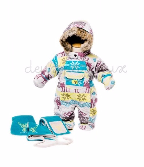 2. Комбез deux par deux зимний с манишкой, шарфом и 2 шапочки к нему (флисовая и вязаная) с закрытыми ножками, пинетки слитные т.е. не снимаются