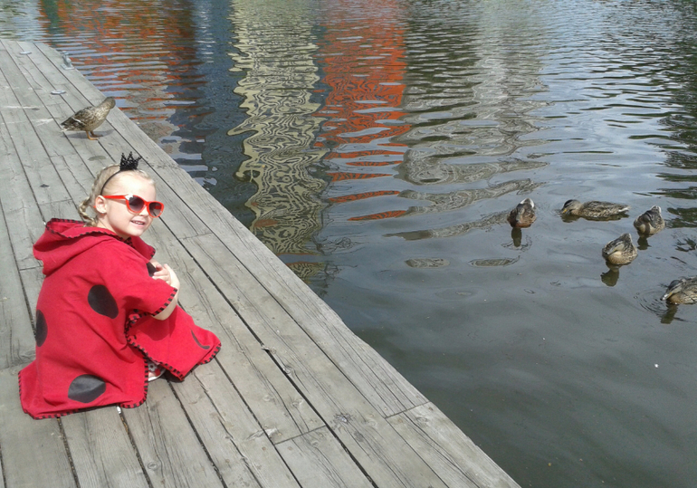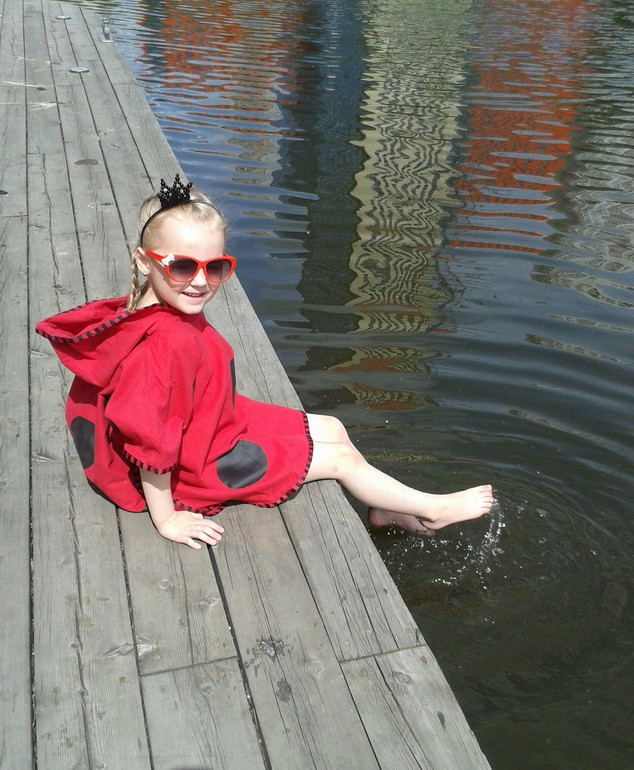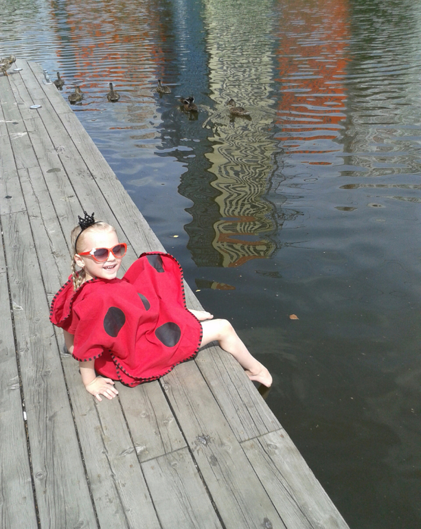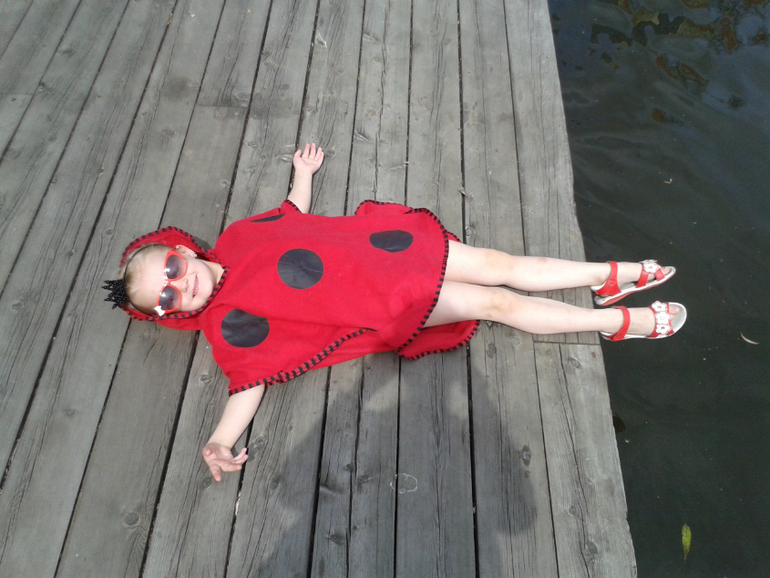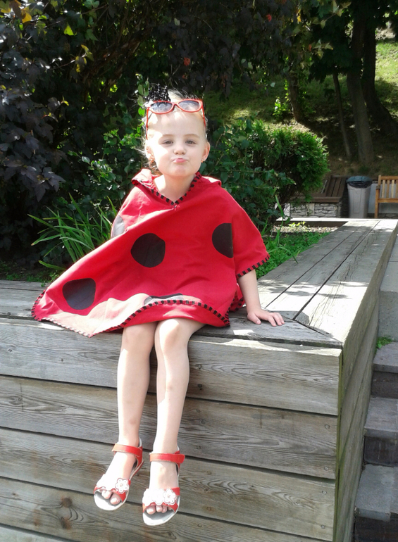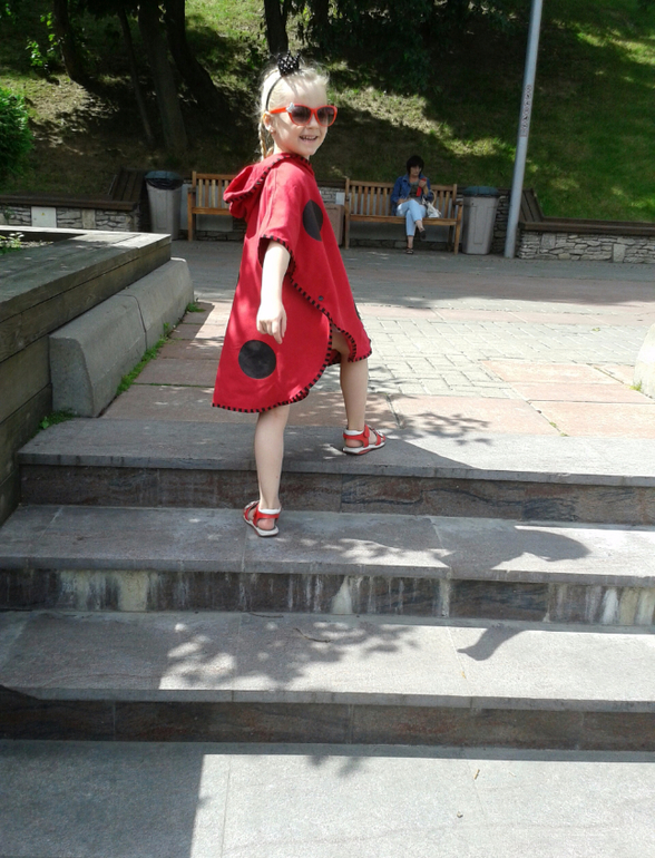 Только хвасты! (одежда и обувь)По счастливому стечению обстоятельств Человек с Пуговкой превратился в Человека с Божьей коровкой надеюсь временно. Прекрасный костюм божьей коровки завелся в нашем доме в конце прошлой недели и не было ни дня, чтобы он лежал без дела. Дочка надевает его сразу, как мы заходим домой и говорит, что это платье королевы. А разве бывают королевы без короны? Не бывает! Вашему вниманию королева порта божьих коровок на отдыхе: