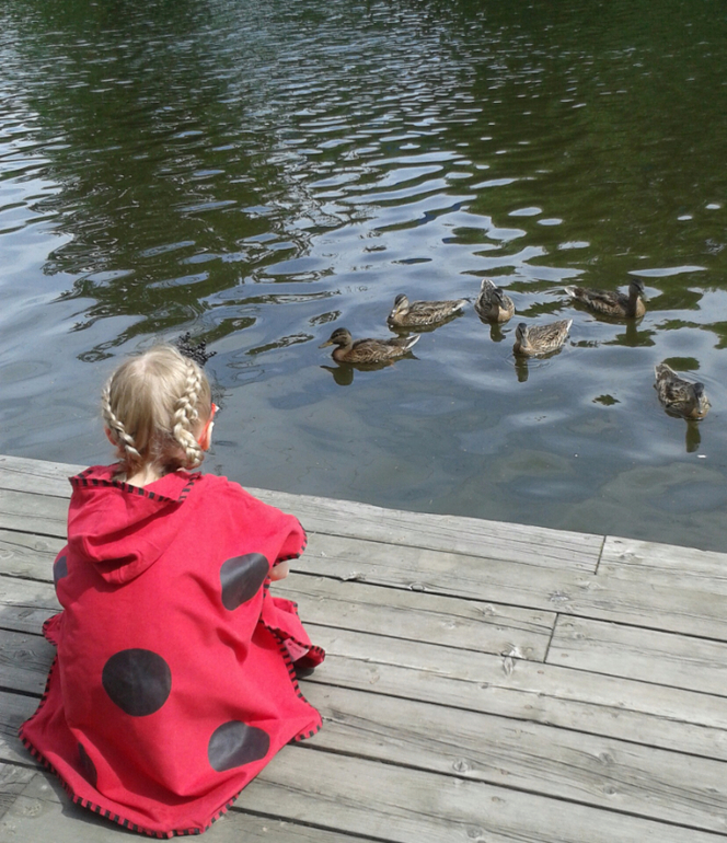 Полотенце-пончо, мягкое и приятное, даже в мокром виде я мочила и надевала. А в это время кто-то клюнул на гигантское насекомое. Или насекомое на кого-то...