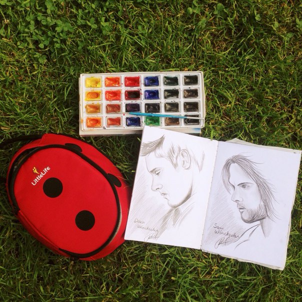 Она собрала всё что ей необходимо,карандаши сложила в кармашек ланч бокса,прихватила немного еды,она тоже у меня любить пить только холодный сок,и отправилась на пикник.