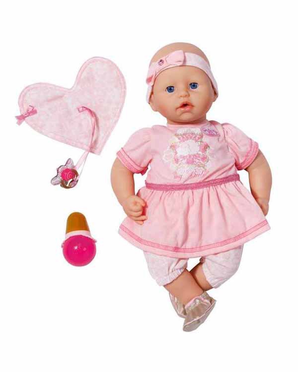 Обычная кукла есть,купили на море и первое время прям не отходила и кормила!щас забросила!Но во дворе на днях увидела у девочки коляску люльку и пупса и так хорошо его качала прям)