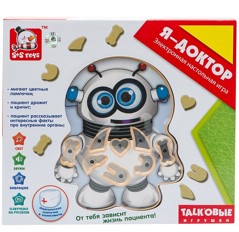 Прикольный малыш))) у нас просто "операция" не интересно вообще, там больше на ловкость, вытащить предметы, не задев края "ранки", если задеваешь, то издается не очень приятный звук и на этом все.