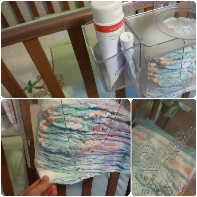 , но, имея таконо плана разные коробочки, в которыз лежат Сашины мелки игрушки, могу сказать, что со временем эта то ли бумага, то ли ткант, из которой сделан органайзер теряет форму и деформируется, и тут мама узрела где-то пластиковый органайзер, который и был тут же найден мною на амазоне. Обошелся он мне полтора года назад в копейки, 10$)) по курсу то ли 8,то ли уже 9, а удовольствие своим эстетическим видом доставляет и по сей день. Вообщем, рекомендую! Крепится на кроватку или пеленальный столик таким же пиозрачным как-бы бортиком, крючечком. Боковые отсеки снимаются-одеваются, крышка на которой стоит бокс с салфетками поднимается и внутрь закладываются памперсы. Снизу в пластике прорезь, позволяющая лекго достать памперс. Все гениальное просто), покупала на амазоне, в разделе baby-diaper stackers, добавила бы ссылку, но почему-то не хочет с мобильного добавляться.