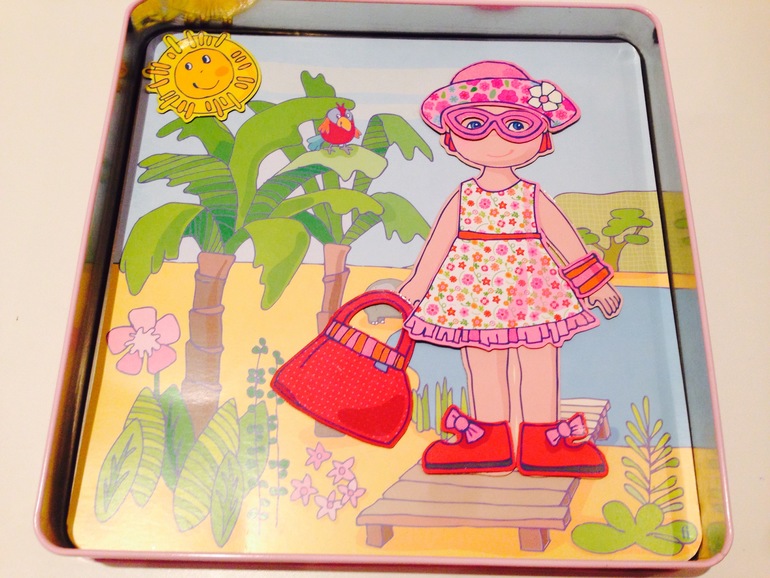 Игра происходит так: ставим картонную декорацию в металлическую коробку и подбираем наряд, подходящий ситуации.