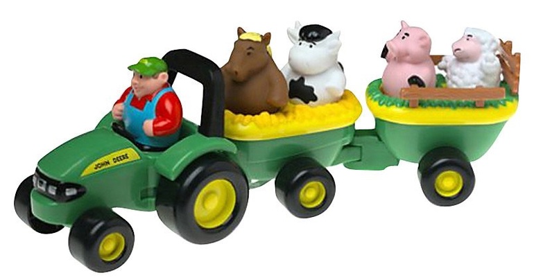 Ссылку скинуть не могу, картинки нашла. Погугли: набор ферма джон дир. Крутая вещь. Каждый день играет, человечков меняет, прицепы перестегивает, животных этих выучил.