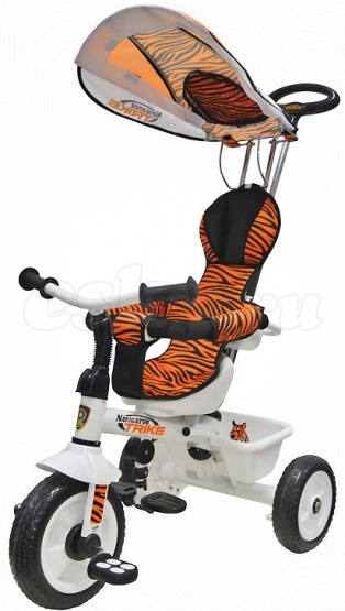 у нас такой. отвратительно держится козырек, на кочках может даже ребёнку на голову упасть. педали расположены неправильно, дотянуться до них состояние только высокий ребенок. покупкой недовольна, радует только дизайн