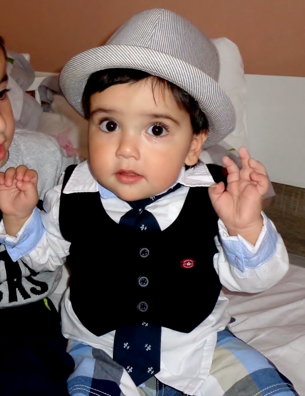 Жилет и галстук убрать, либо шорты поменять на джинсы и все равно галстук как-то торчит из под жилета некрасиво. А вообще вся одежда очень красивая, малыш супер.