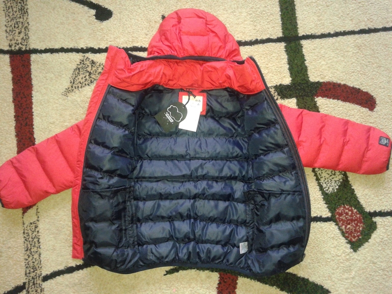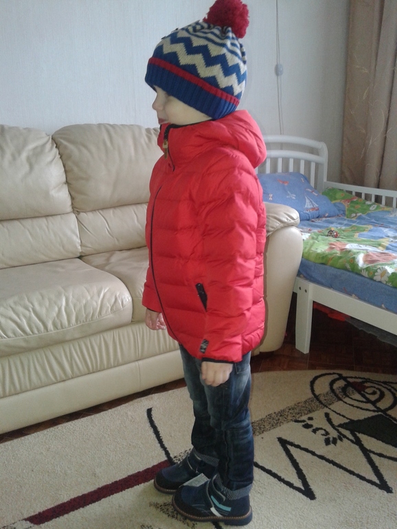 На фото куртка по толщине как у нас была с динозаврами. А красная значительно тоньше.