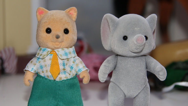 фото нашла на просторах интернета: слева кошечка Хэппи Фэмэли, а справа слонёнок оригинальный Sylvanian Families. Мне кажется качество норм