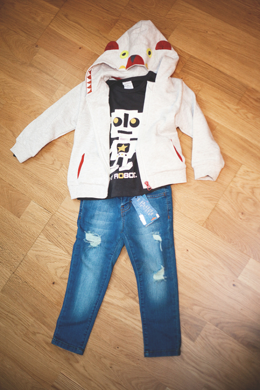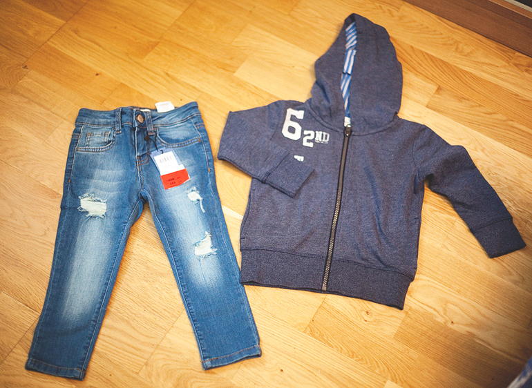 Тут джинсы Котон за 399 рублей и толстовка ТОм Тайлор за 599)