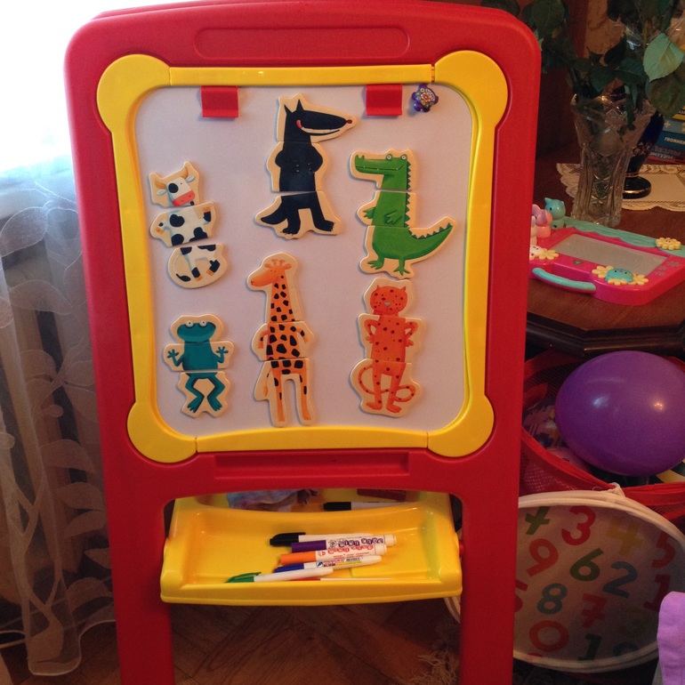 Доска была отдана заранее, к ней обращаемся каждый день: рисуем, стирает сама, магнитики клеит.