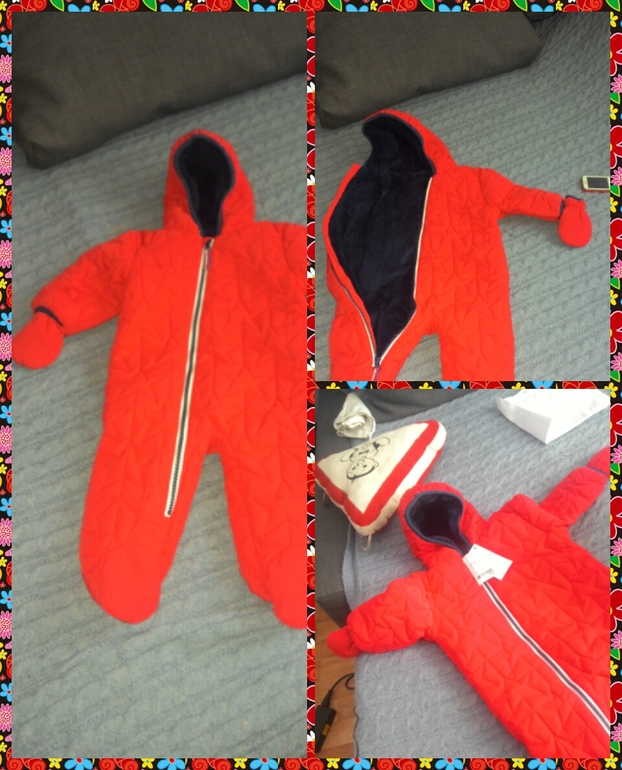 Но все ожидания оправдались. Комбинезон очень понравился. Цвет яркий, насыщенный. Внутри мягкая подкладка, очень приятная на ощупь. Сверху непродуваемая ткань. В комплекте идут варежки,что было особенно важно для меня. Не надо думать, чем согреть руки сыночку. С размером тоже угадала) Серафим сейчас ростом примерно 65-66 см. А комбинезончик я взяла на 6-9 месяцев (68-74 см). Так что запас неплохой, можно не волноваться, что если одеть потеплее, он не влезет в комбинезон.