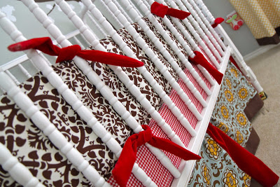 Детская комната : мебель, постельное белье, предметы интерьера и аксессуарыЯ так счастлива что нашла то что так давно искала) Случайно зашла в местный крупный детский магазин, и влюбилась) 2 дня спать не могла, а сегодня снова поехала, весь обмерила комплект, общупала) записала фирму и дома 2 часа все перечитывала, но так как в живую отзывов нет, только лишь интернет магазины, причем все в Америке. Что имеем: кроватка 140х70, но комплект на кроватку 130х70. Простынка с хорошим запасом, думаю натянется на наш матрас) Бортики просто восторг, с узорчиками) все как я люблю) и одеялко красивое стеганное) в общем я счастлива) завтра бегу покупать) фирма cocalo couture модель delilah. В комплекте бортики, одеяло, простынь на резинке, и простынь-юбка. Больше фото подкат.